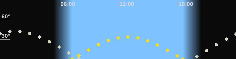 | Sonnenaufgang | 07:20 Uhr im Osten (αAz = 97.8°) |