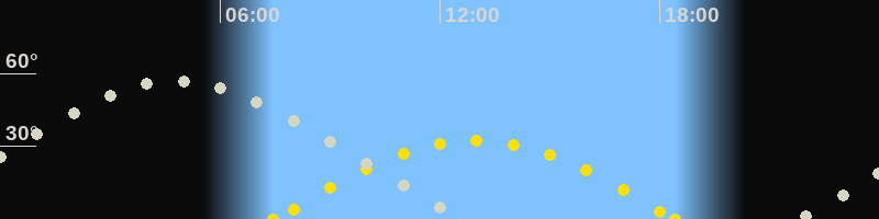 | Höchster Sonnenstand (Kulmination) | 12:57 Uhr (h = 32.3°) |