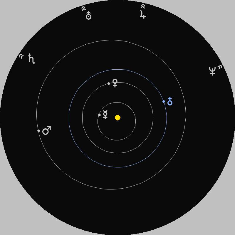 | f Merkur g Venus l Erde h Mars j Jupiter S Saturn A Uranus G Neptun |
