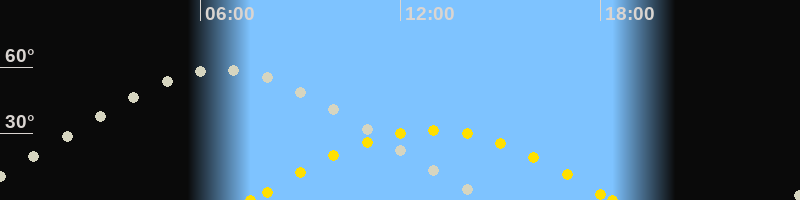 | Höchster Stand (Kulmination) | 06:35 Uhr (h=58.9°) |