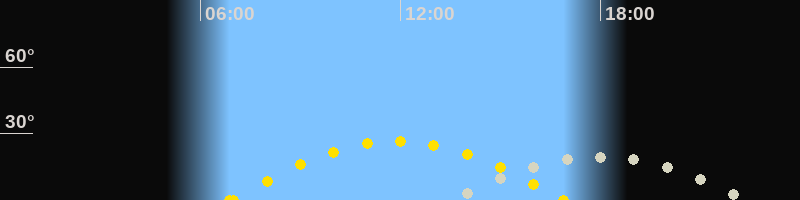 | Mondaufgang | 13:30 Uhr im Südosten (αAz = 121.9°) |