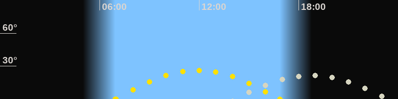 | Höchster Stand (Kulmination) | 18:42 Uhr (h=21.4°) |