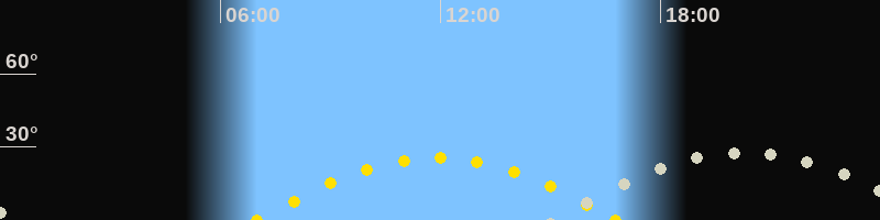 | Sonnenaufgang | 06:59 Uhr im Osten (αAz = 111.1°) |