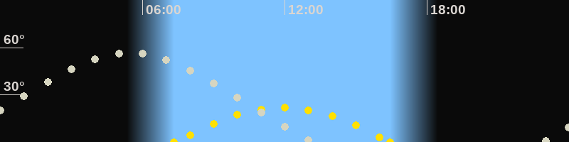 | Sonnenaufgang | 07:19 Uhr im Südosten (αAz = 117.3°) |