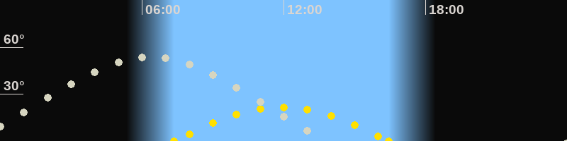 | Höchster Stand (Kulmination) | 06:22 Uhr (h=53.9°) |