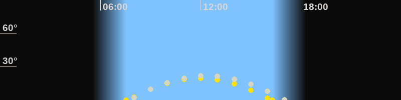 | Höchster Sonnenstand (Kulmination) | 11:55 Uhr (h = 19.8°) |