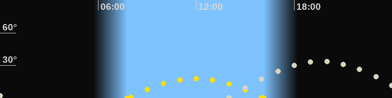 | Höchster Sonnenstand (Kulmination) | 11:58 Uhr (h = 18°) |
