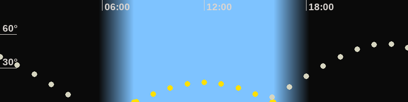 Höchster Sonnenstand (Kulmination)11:59 Uhr (h = 17.3°)