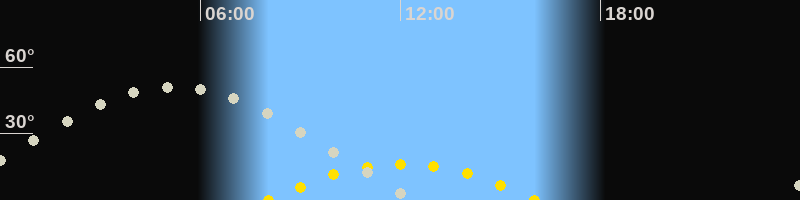 | Höchster Sonnenstand (Kulmination) | 12:02 Uhr (h = 16.4°) |