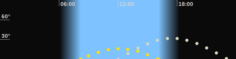 | Höchster Sonnenstand (Kulmination) | 12:10 Uhr (h = 15.9°) |