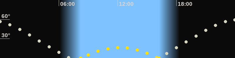 Höchster Sonnenstand (Kulmination)12:13 Uhr (h = 16.3°)