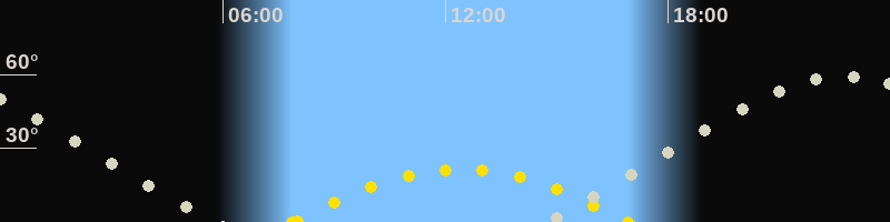 | Höchster Sonnenstand (Kulmination) | 12:23 Uhr (h = 21.5°) |