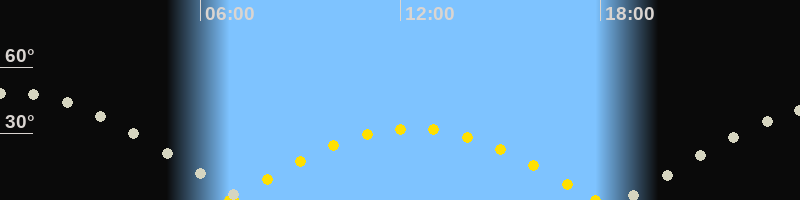 Höchster Sonnenstand (Kulmination)12:22 Uhr (h = 32.3°)