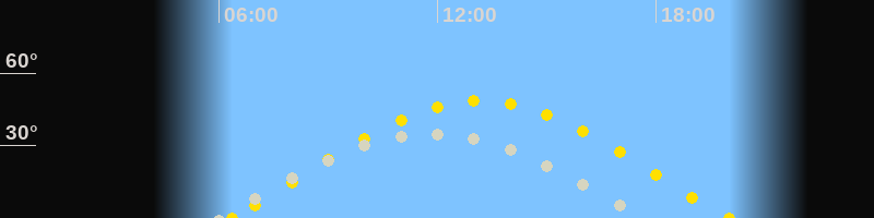 | Sonnenaufgang | 06:21 Uhr im Osten (αAz = 74.7°) |