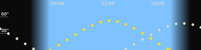 | Sonnenaufgang | 05:57 Uhr im Osten (αAz = 68°) |