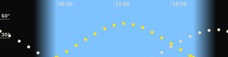 | Höchster Sonnenstand (Kulmination) | 13:08 Uhr (h = 53°) |