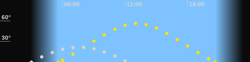 | Höchster Sonnenstand (Kulmination) | 13:06 Uhr (h = 56.3°) |