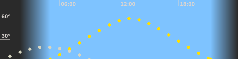 | Höchster Sonnenstand (Kulmination) | 13:08 Uhr (h = 61.5°) |