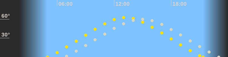 | Höchster Sonnenstand (Kulmination) | 13:10 Uhr (h = 62.6°) |