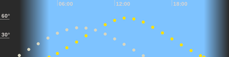 | Höchster Sonnenstand (Kulmination) | 13:15 Uhr (h = 61.8°) |