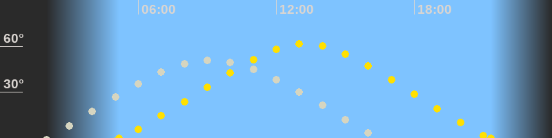 | Höchster Sonnenstand (Kulmination) | 13:15 Uhr (h = 61.7°) |
