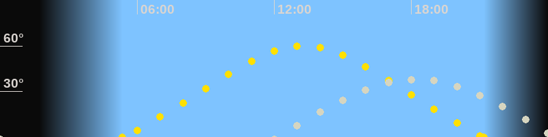 | Höchster Sonnenstand (Kulmination) | 13:16 Uhr (h = 60.2°) |