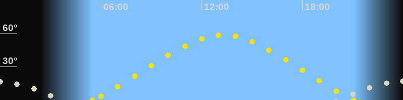 | Höchster Sonnenstand (Kulmination) | 13:16 Uhr (h = 58.8°) |
