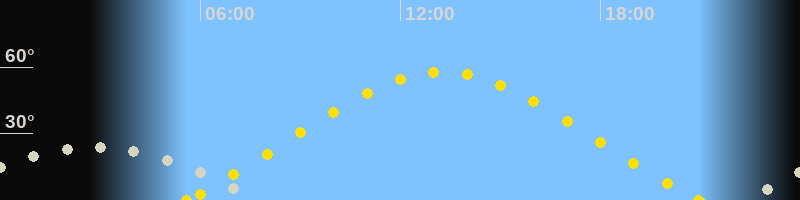 | Sonnenaufgang | 05:34 Uhr im Nordosten (αAz = 58.8°) |