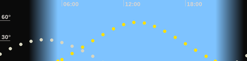 | Höchster Sonnenstand (Kulmination) | 13:16 Uhr (h = 57.4°) |