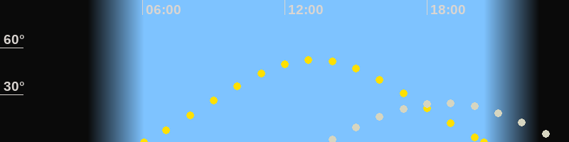 | Sonnenaufgang | 06:03 Uhr im Osten (αAz = 67.9°) |