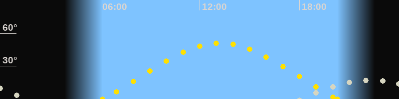 | Sonnenaufgang | 06:09 Uhr im Osten (αAz = 70.1°) |