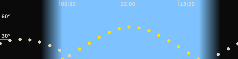 | Sonnenaufgang | 06:18 Uhr im Osten (αAz = 73.4°) |