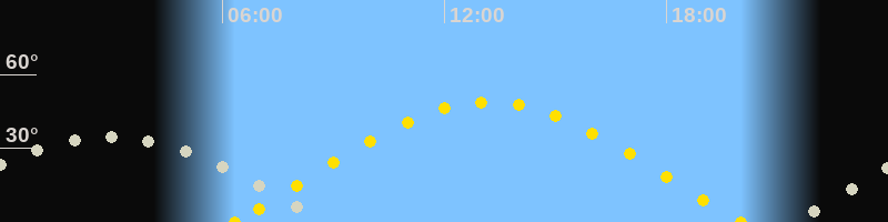 | Sonnenaufgang | 06:19 Uhr im Osten (αAz = 74°) |