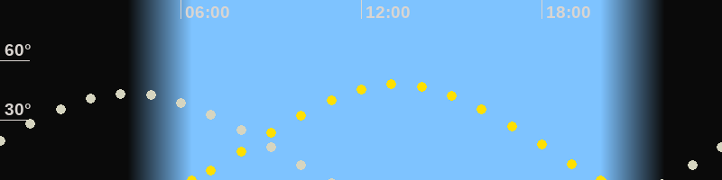 | Mondaufgang | 22:06 Uhr im Osten (αAz = 78.4°) |