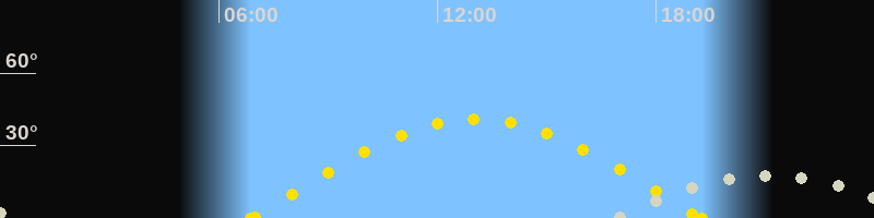 Höchster Sonnenstand (Kulmination)13:04 Uhr (h = 40.9°)
