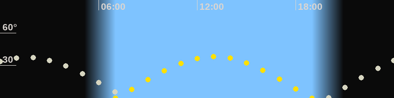 Höchster Sonnenstand (Kulmination)13:01 Uhr (h = 38.2°)