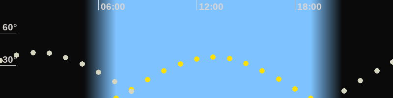 | Sonnenaufgang | 07:04 Uhr im Osten (αAz = 91.5°) |