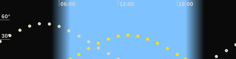 | Höchster Sonnenstand (Kulmination) | 13:00 Uhr (h = 36.6°) |
