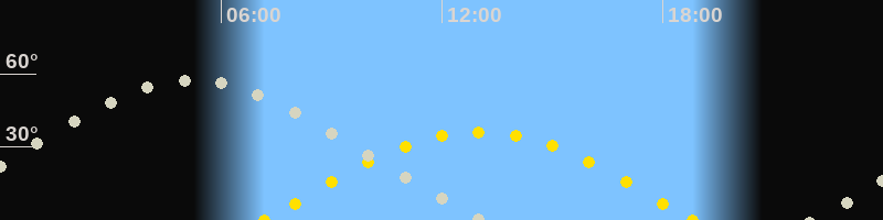 | Sonnenaufgang | 07:10 Uhr im Osten (αAz = 93.9°) |