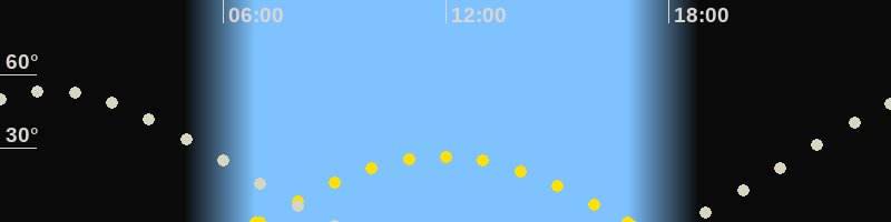 | Höchster Sonnenstand (Kulmination) | 11:54 Uhr (h = 26.6°) |