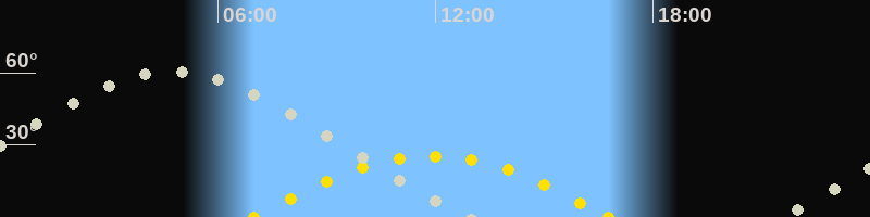 | Sonnenaufgang | 07:00 Uhr im Osten (αAz = 111.6°) |