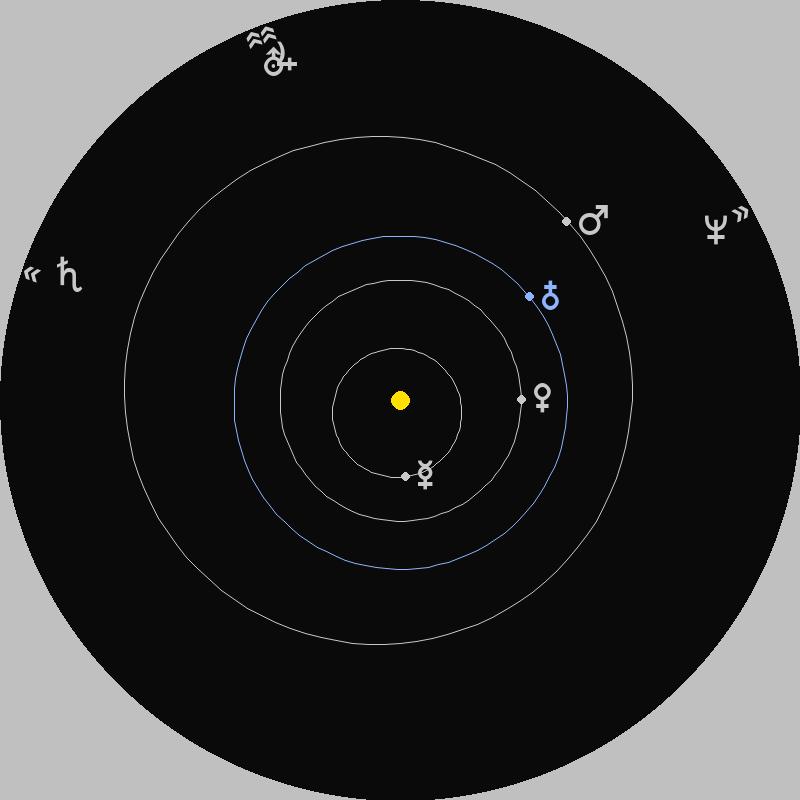 | f Merkur g Venus l Erde h Mars j Jupiter S Saturn A Uranus G Neptun |