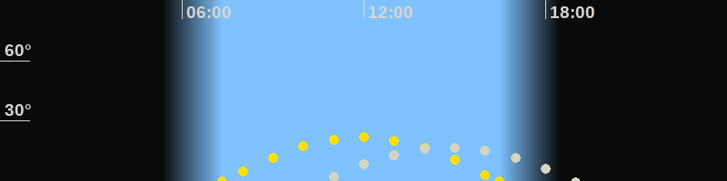 | Sonnenaufgang | 07:19 Uhr im Südosten (αAz = 117.1°) |