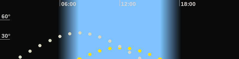| Höchster Sonnenstand (Kulmination) | 11:59 Uhr (h = 17.2°) |