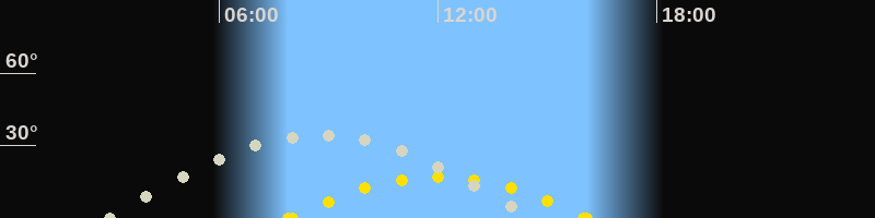 | Höchster Sonnenstand (Kulmination) | 12:00 Uhr (h = 17.1°) |