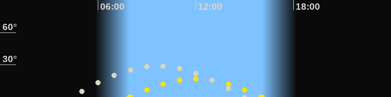 | Höchster Sonnenstand (Kulmination) | 12:00 Uhr (h = 17°) |