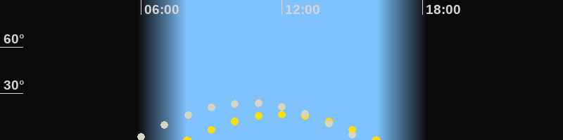 | Höchster Sonnenstand (Kulmination) | 12:01 Uhr (h = 16.8°) |