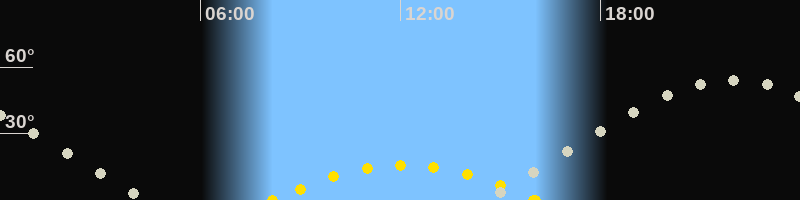 | Höchster Sonnenstand (Kulmination) | 12:07 Uhr (h = 15.9°) |