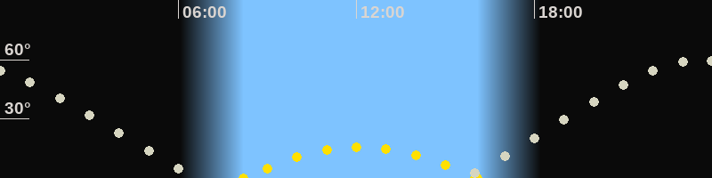 Höchster Sonnenstand (Kulmination)12:08 Uhr (h = 15.8°)