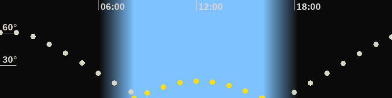 Höchster Stand (Kulmination)00:28 Uhr (h=60.9°)